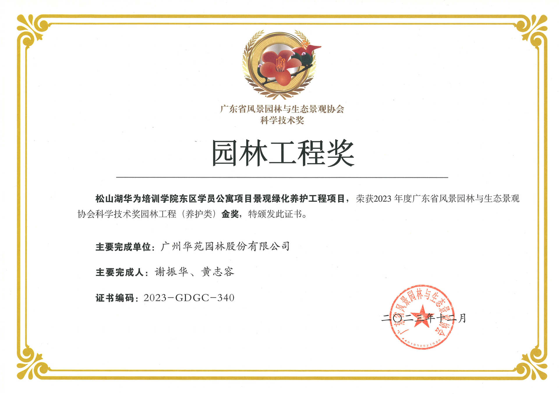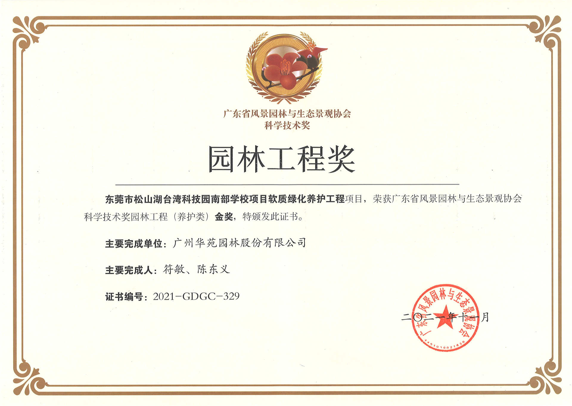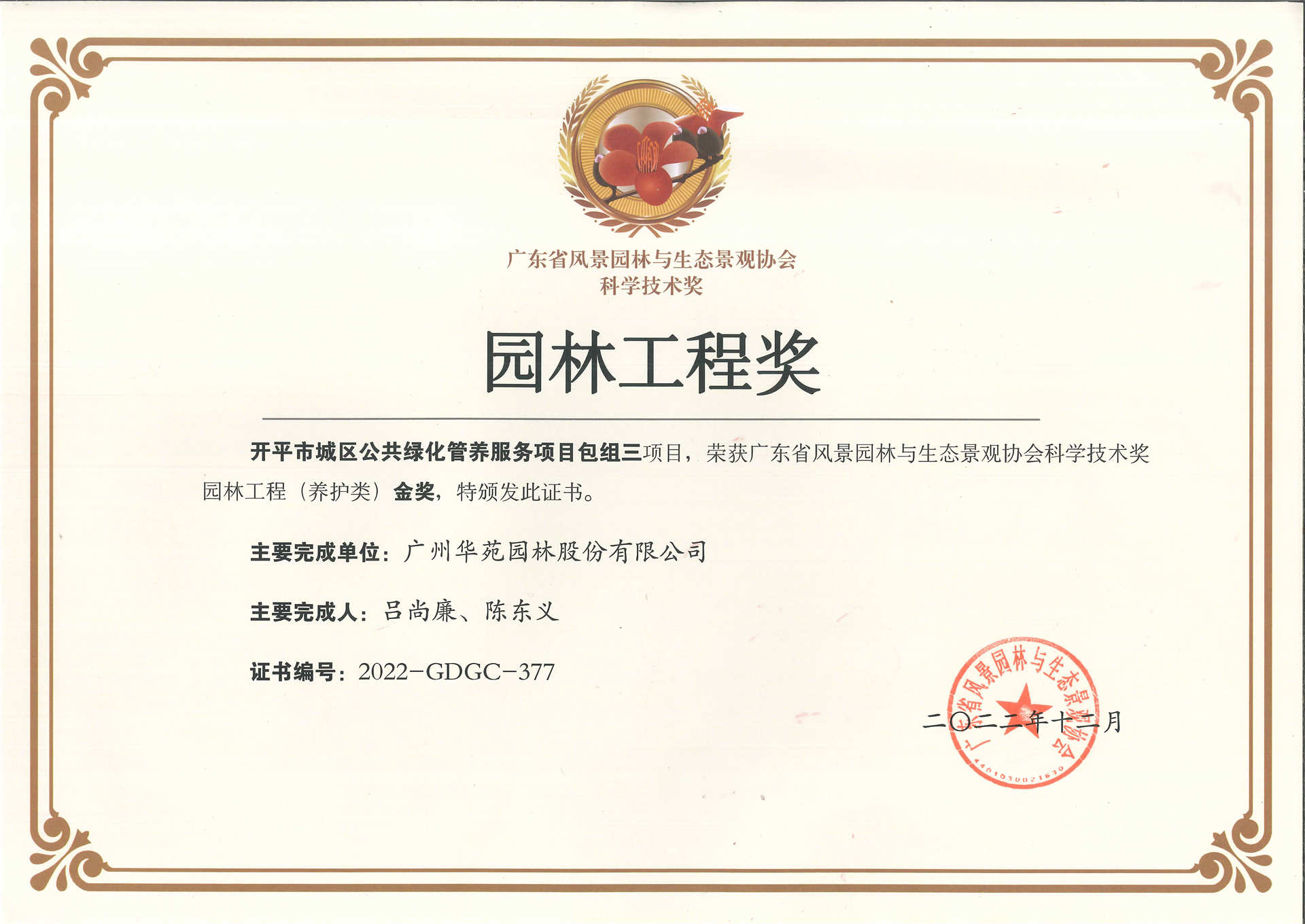 2022-2023年廣東省風(fēng)景園林與生態(tài)景觀協(xié)會(huì)科學(xué)技術(shù)獎(jiǎng)園林工程(養(yǎng)護(hù)類)金獎(jiǎng)