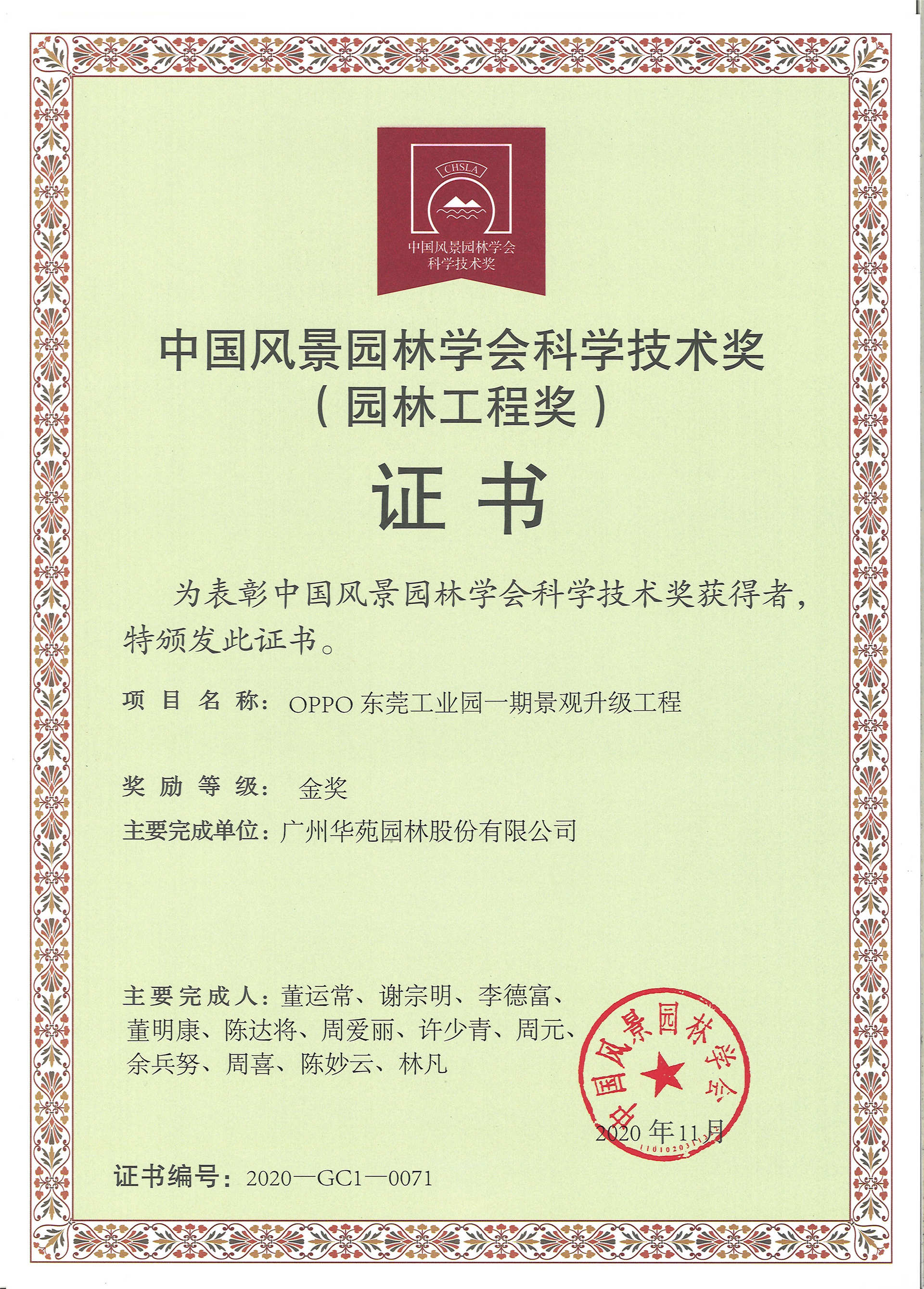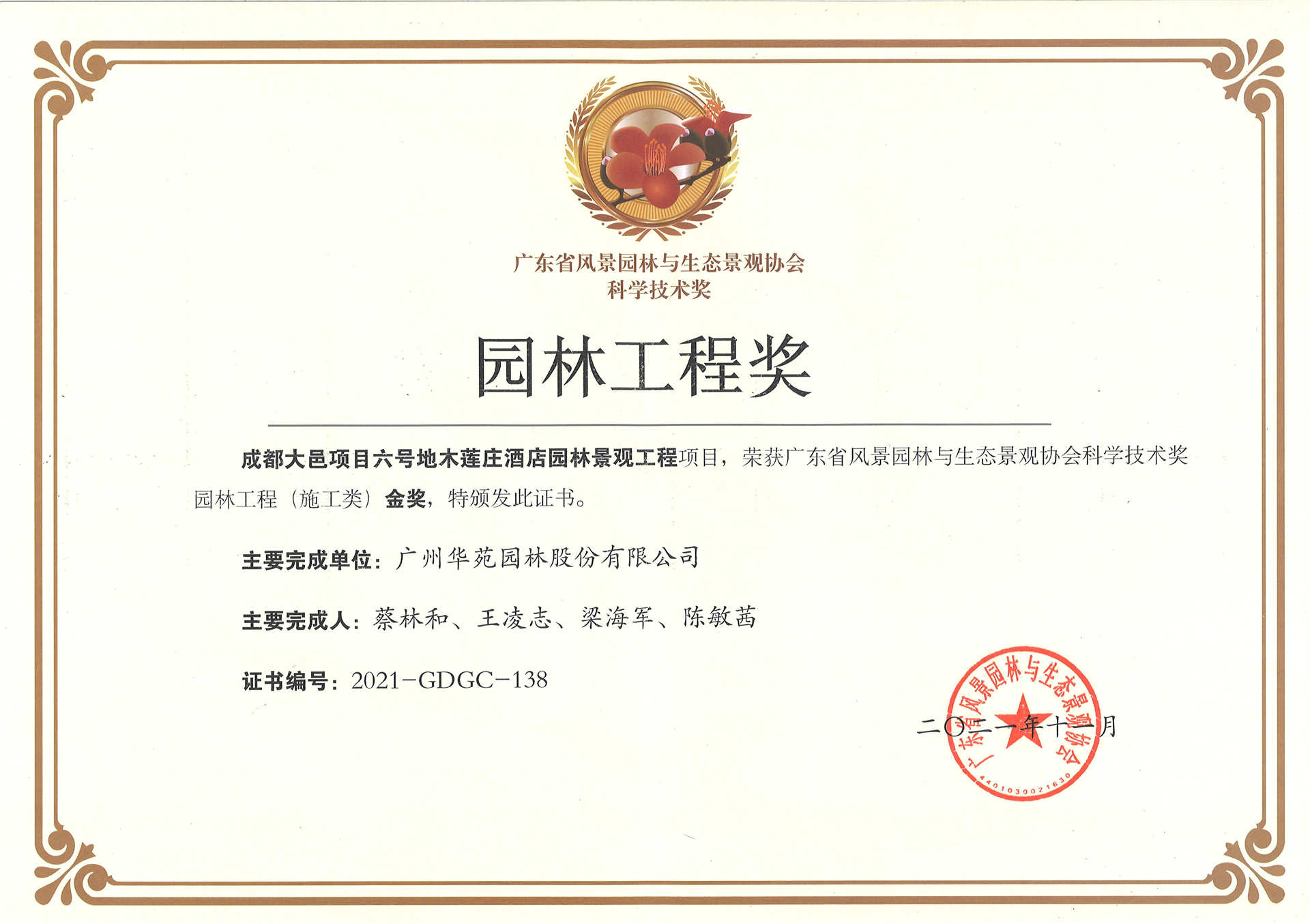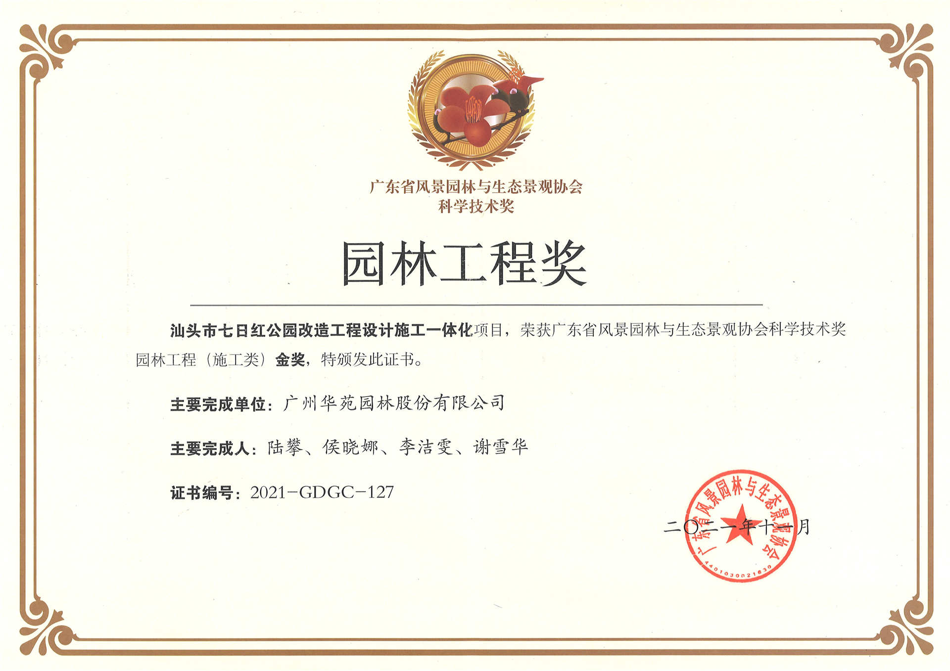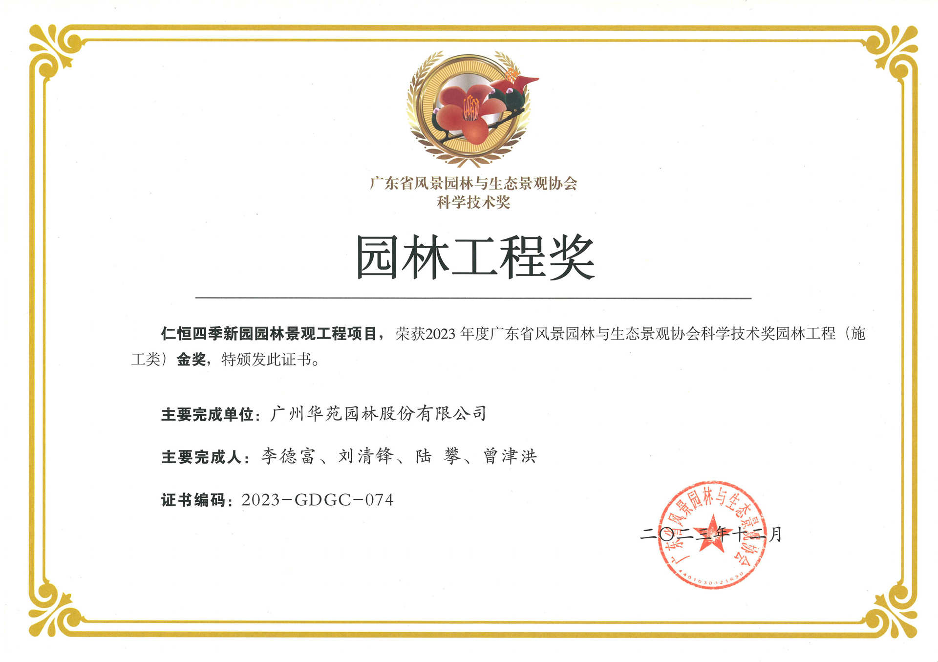 2022-2023年廣東省風(fēng)景園林與生態(tài)景觀協(xié)會(huì)科學(xué)技術(shù)獎(jiǎng)園林工程(養(yǎng)護(hù)類)金獎(jiǎng)