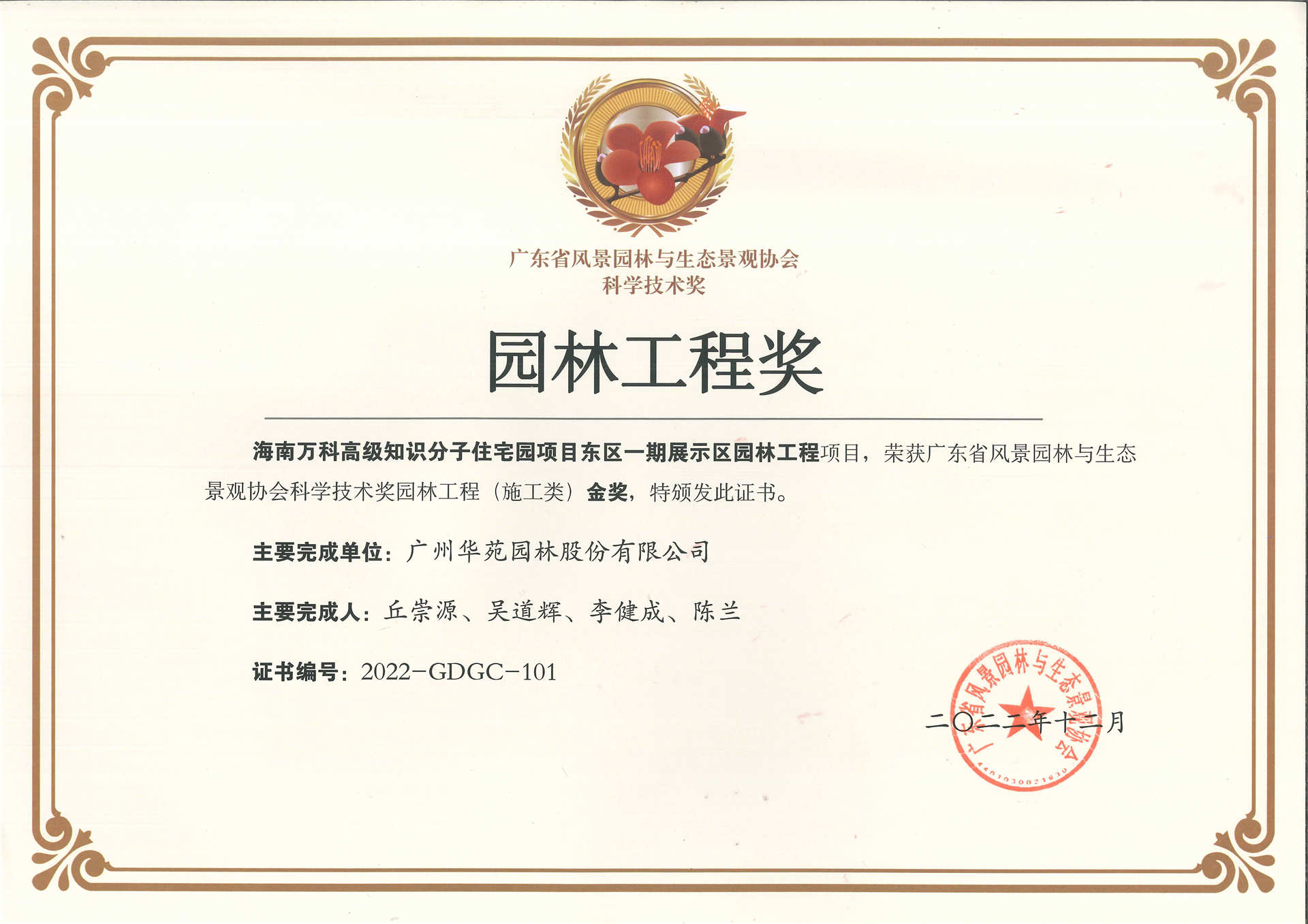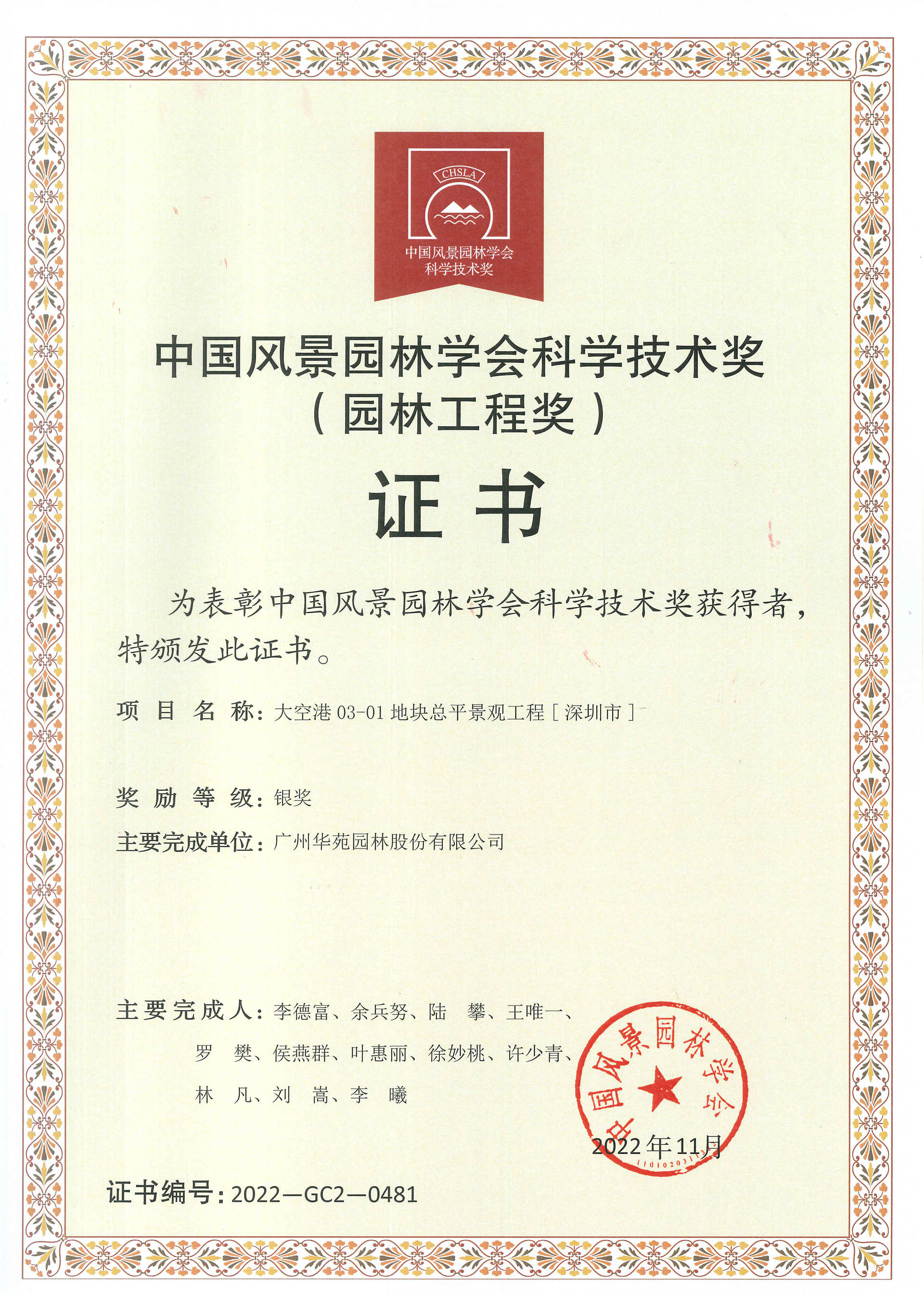 2022年廣東省風(fēng)景園林與生態(tài)景觀協(xié)會(huì)科學(xué)技術(shù)獎(jiǎng)園林工程(施工類)銀獎(jiǎng)