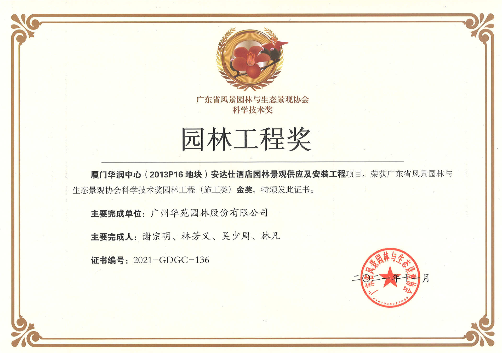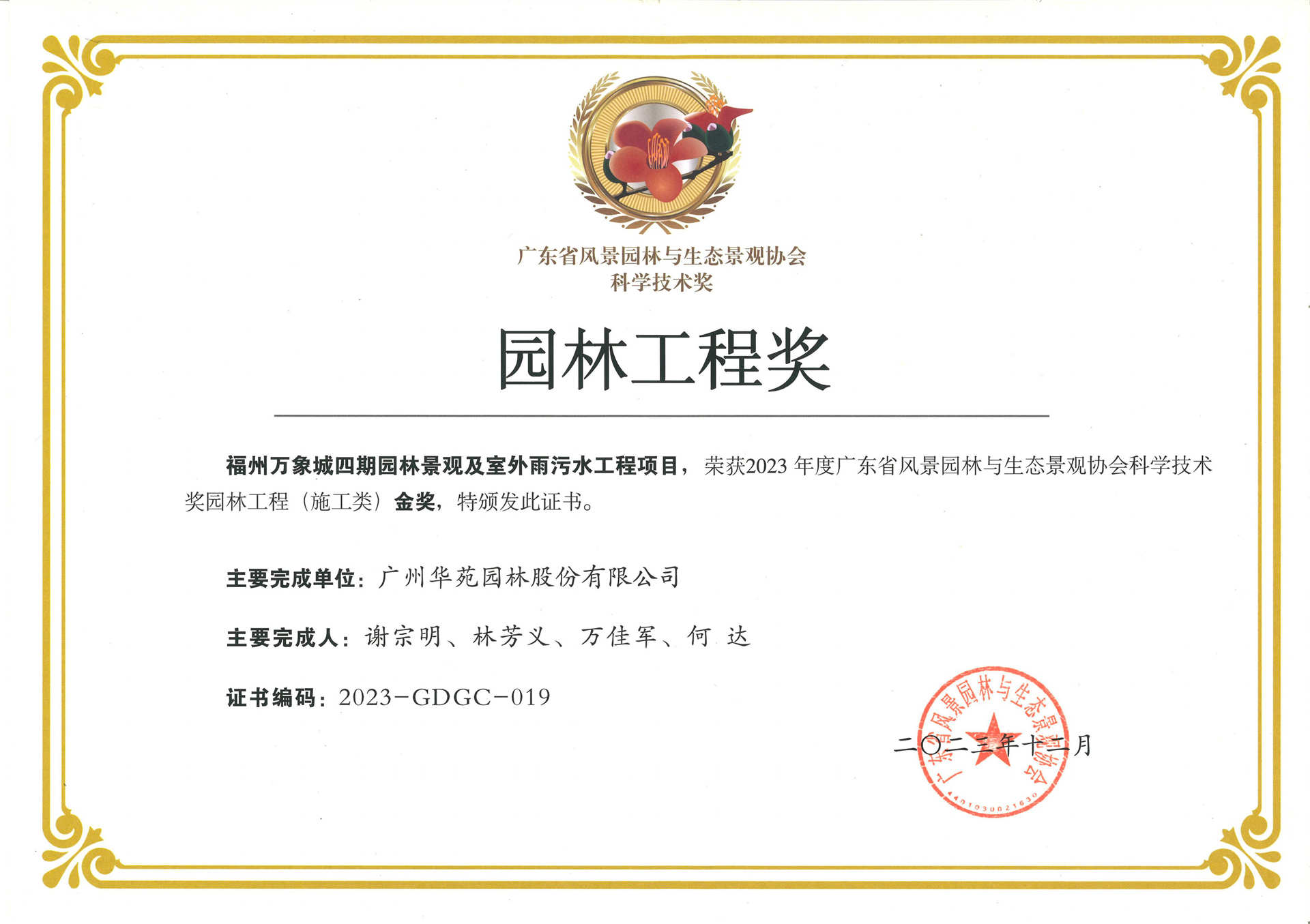 2018-2023年廣東省風(fēng)景園林與生態(tài)景觀協(xié)會(huì)科學(xué)技術(shù)獎(jiǎng)園林工程(施工類)金獎(jiǎng)