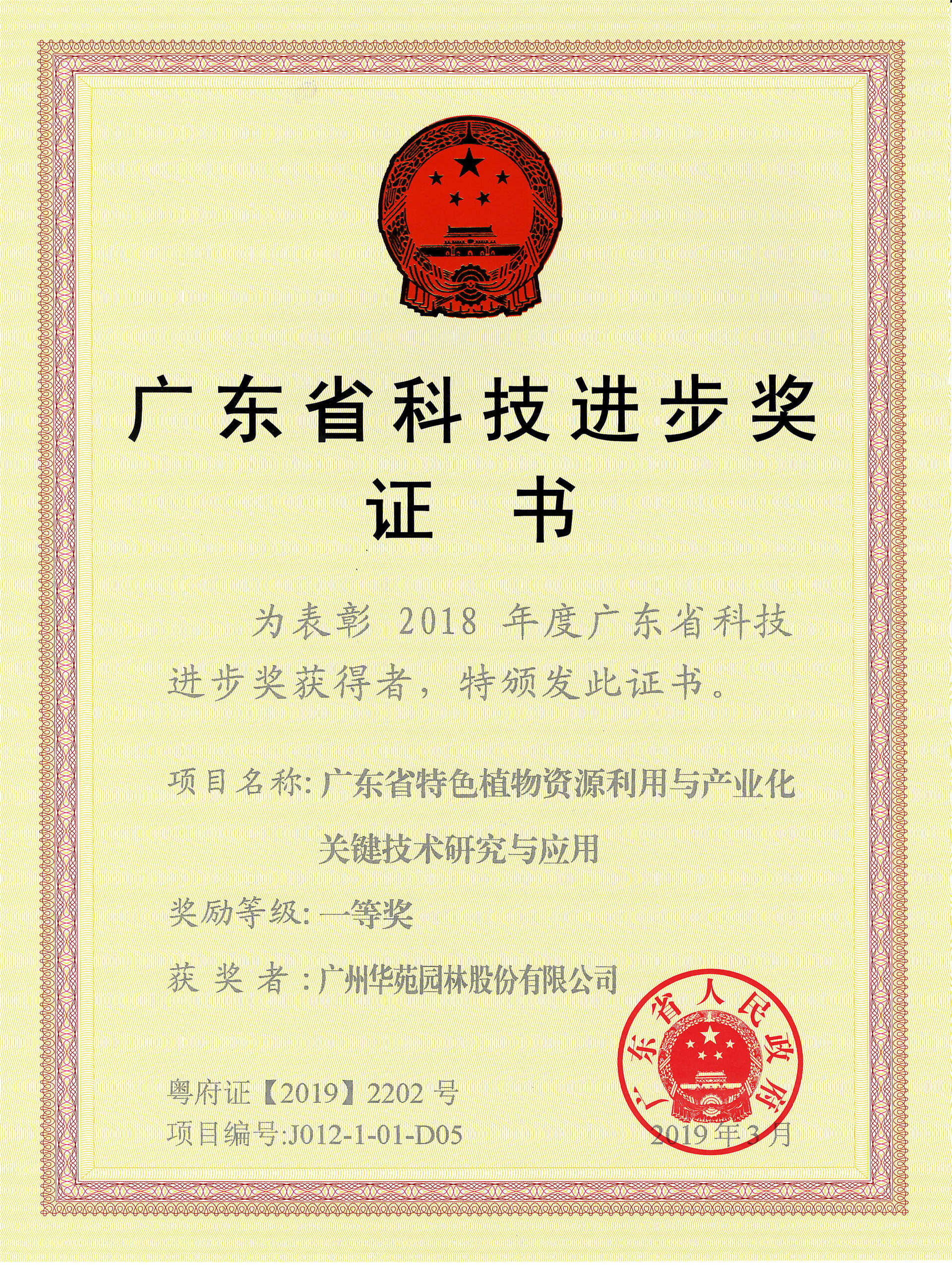 2018年廣東省科技進(jìn)步一等獎(jiǎng)——廣東省特色植物資源利用與產(chǎn)業(yè)化關(guān)鍵技術(shù)研究與應(yīng)用