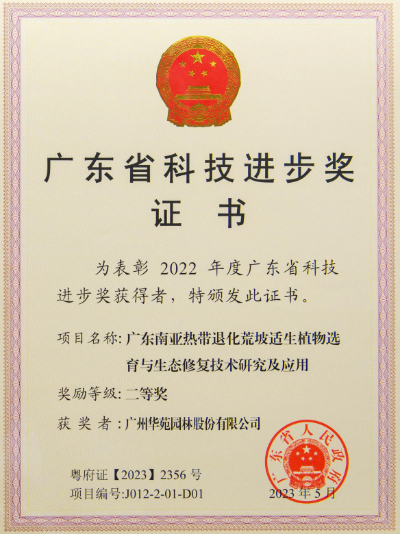 2022年廣東省科技進(jìn)步二等獎(jiǎng)——廣東南亞熱帶退化荒坡適生植物選育與生態(tài)修復(fù)技術(shù)研究與應(yīng)用