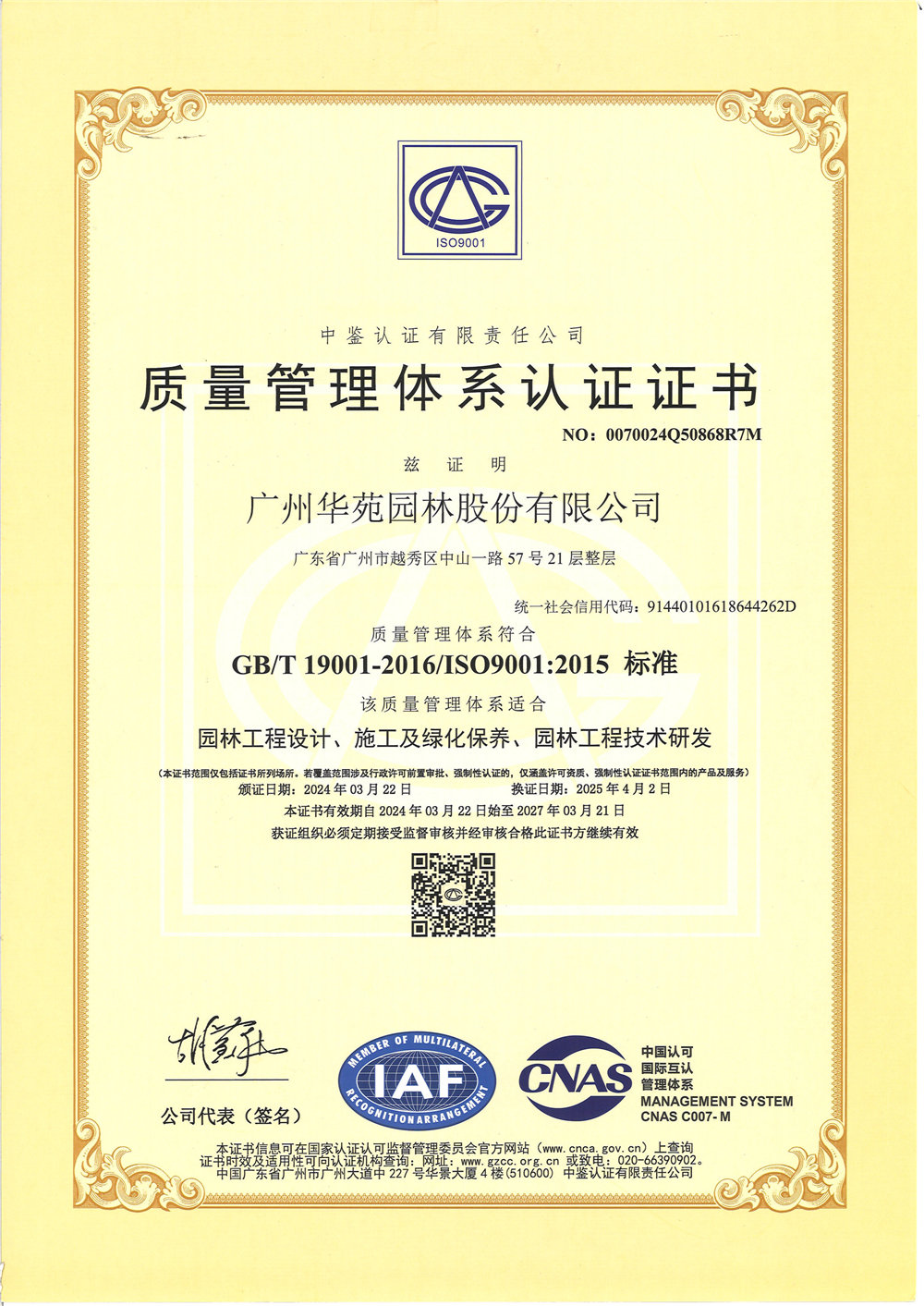 城市園林綠化壹級施工資質(zhì)