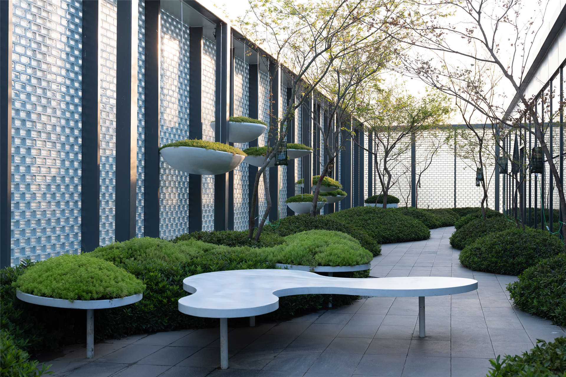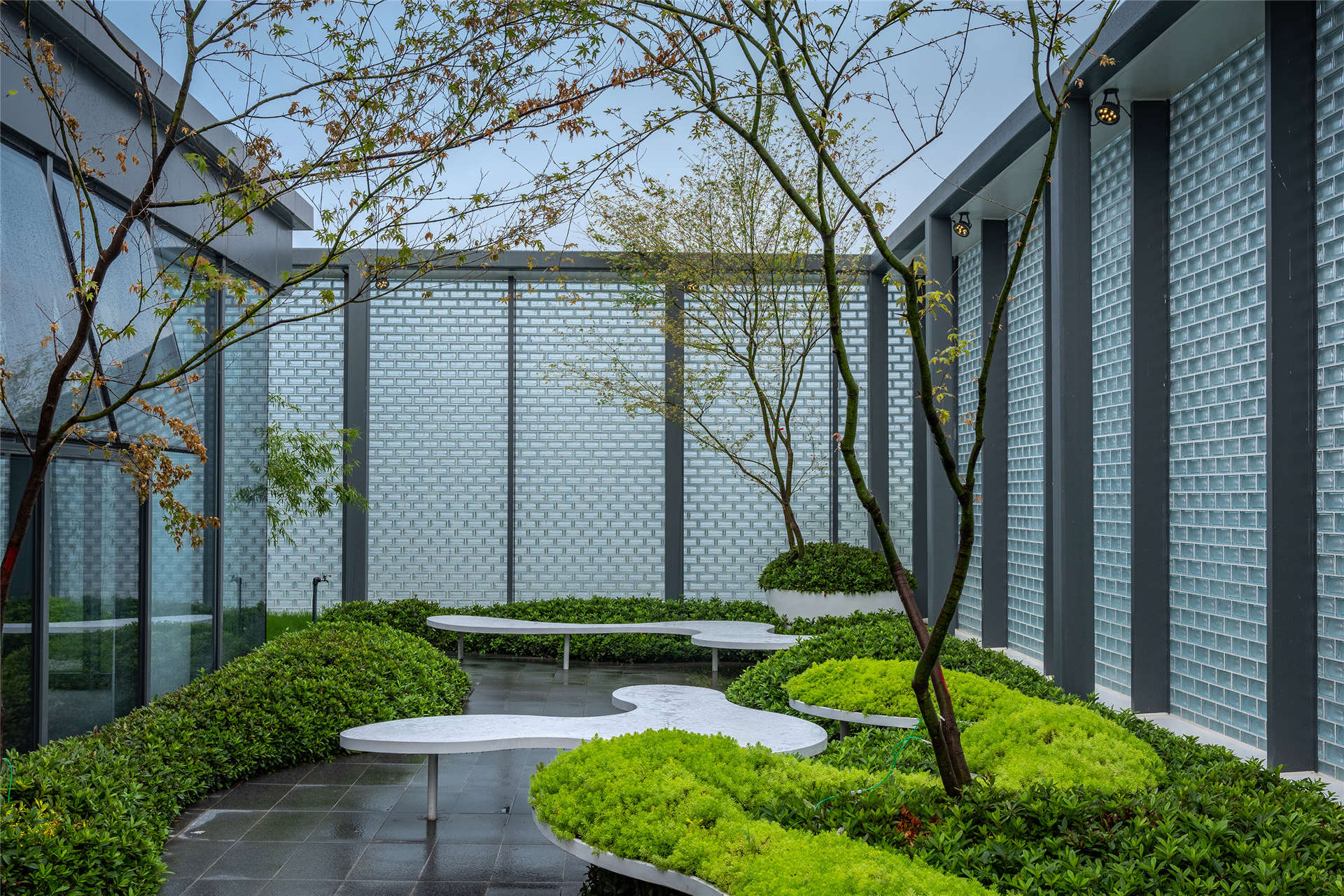 項目景觀借鑒“天圓地方”的哲學(xué)思想,以多樣的造景手法,依中軸線層進(jìn)式展開,營造現(xiàn)代東方的貴雅之境。