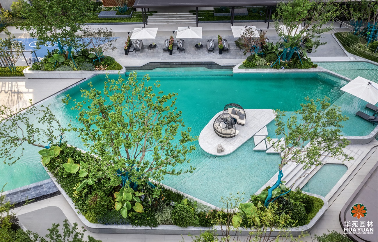 項(xiàng)目景觀以戶(hù)外泳池、水景為中心,構(gòu)筑多個(gè)功能空間,搭配姿態(tài)優(yōu)美的喬灌與品種豐富的花鏡,營(yíng)造休閑度假的景觀氛圍。項(xiàng)目的景觀工程由華苑園林華東區(qū)域運(yùn)營(yíng)中心承建。