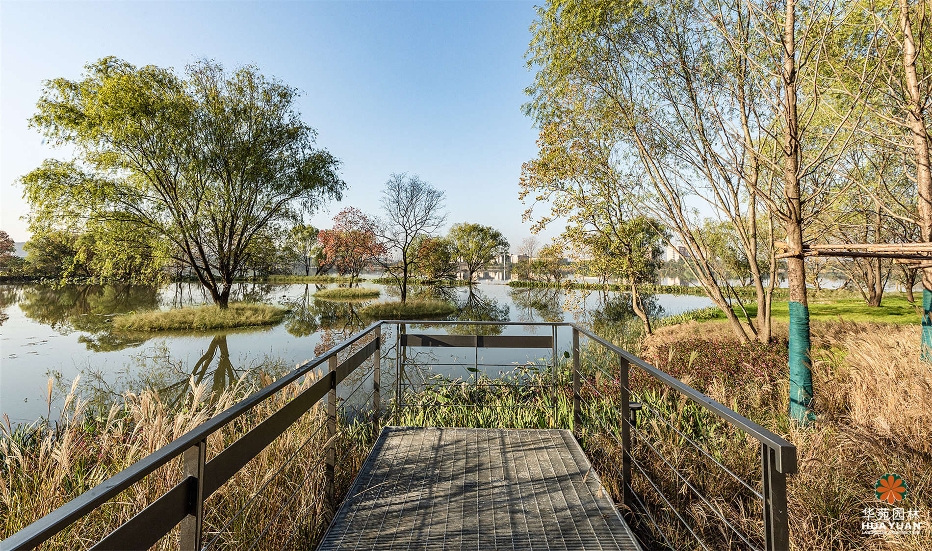 景觀結合自然湖景、場地高差等特點,使用品種多樣的綠植及花境,把天然的景觀肌理與舒適的景觀感受帶入項目,營造山青水闊、草長鶯飛的濱水景觀,感受縱情城市山水的生活理想。