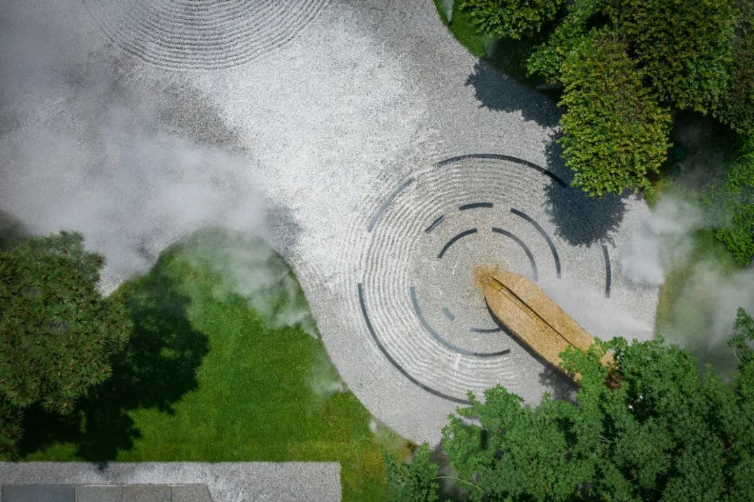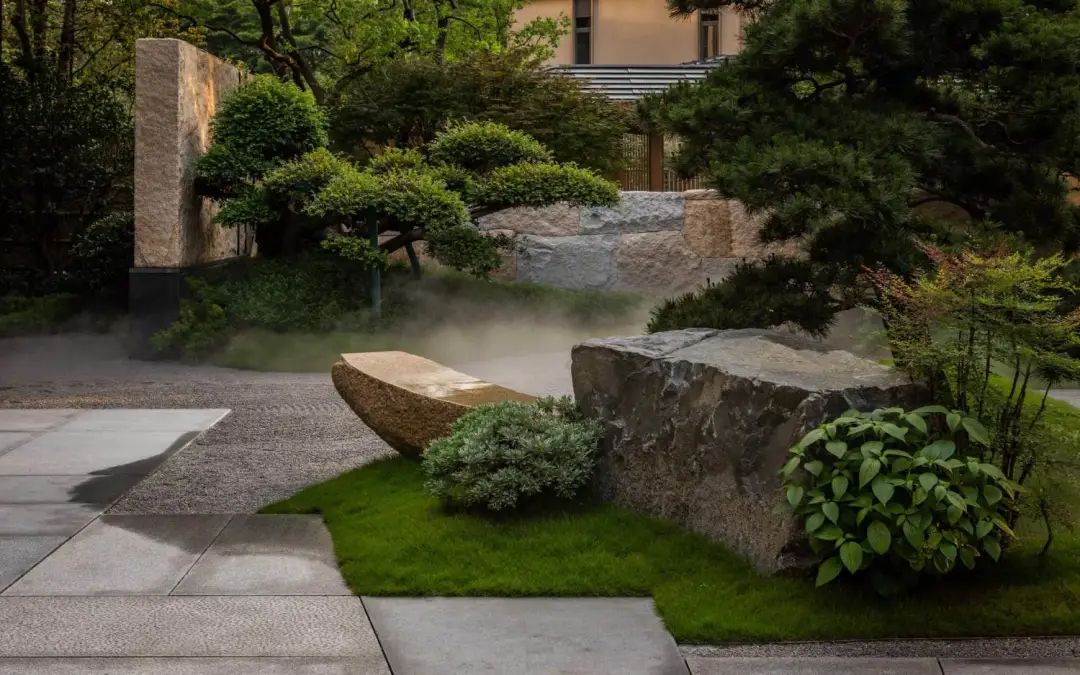 項目以現(xiàn)代園林的格調(diào),將東方元素融入景觀之中,運用水流、景石、綠植造景,設置回游式觀賞動線,營造步移景異的觀景效果。