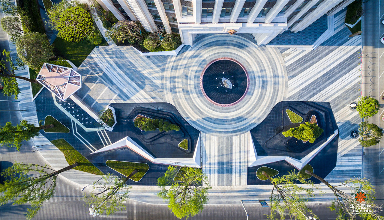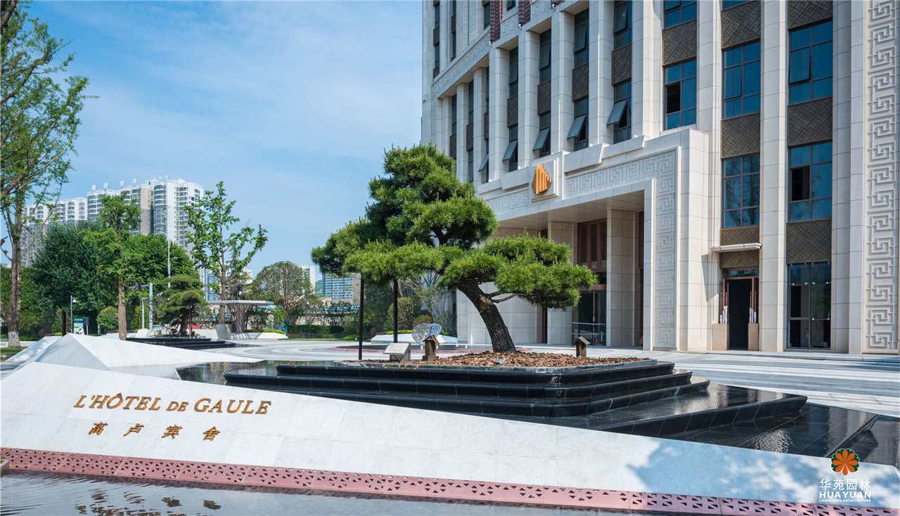 高端商業(yè)綜合體中的五星級酒店,是華苑園林的設(shè)計、施工一體化項目。從法國盧浮宮的金字塔形玻璃入口--與鉆石的切割面汲取靈感,打造簡約、優(yōu)雅的景觀格調(diào),并融入本土文化,引入山形、水韻、古松等東方元素,創(chuàng)造出帶有文化記憶的現(xiàn)代景觀效果。