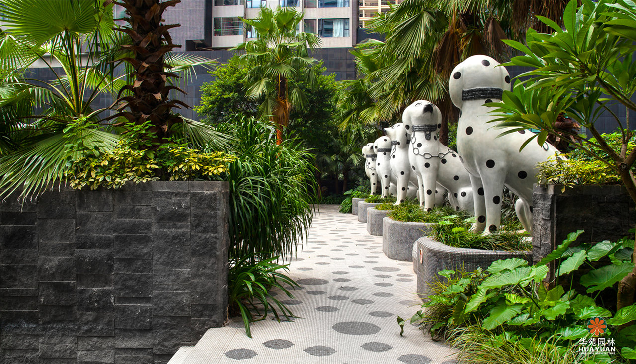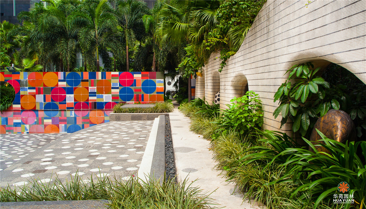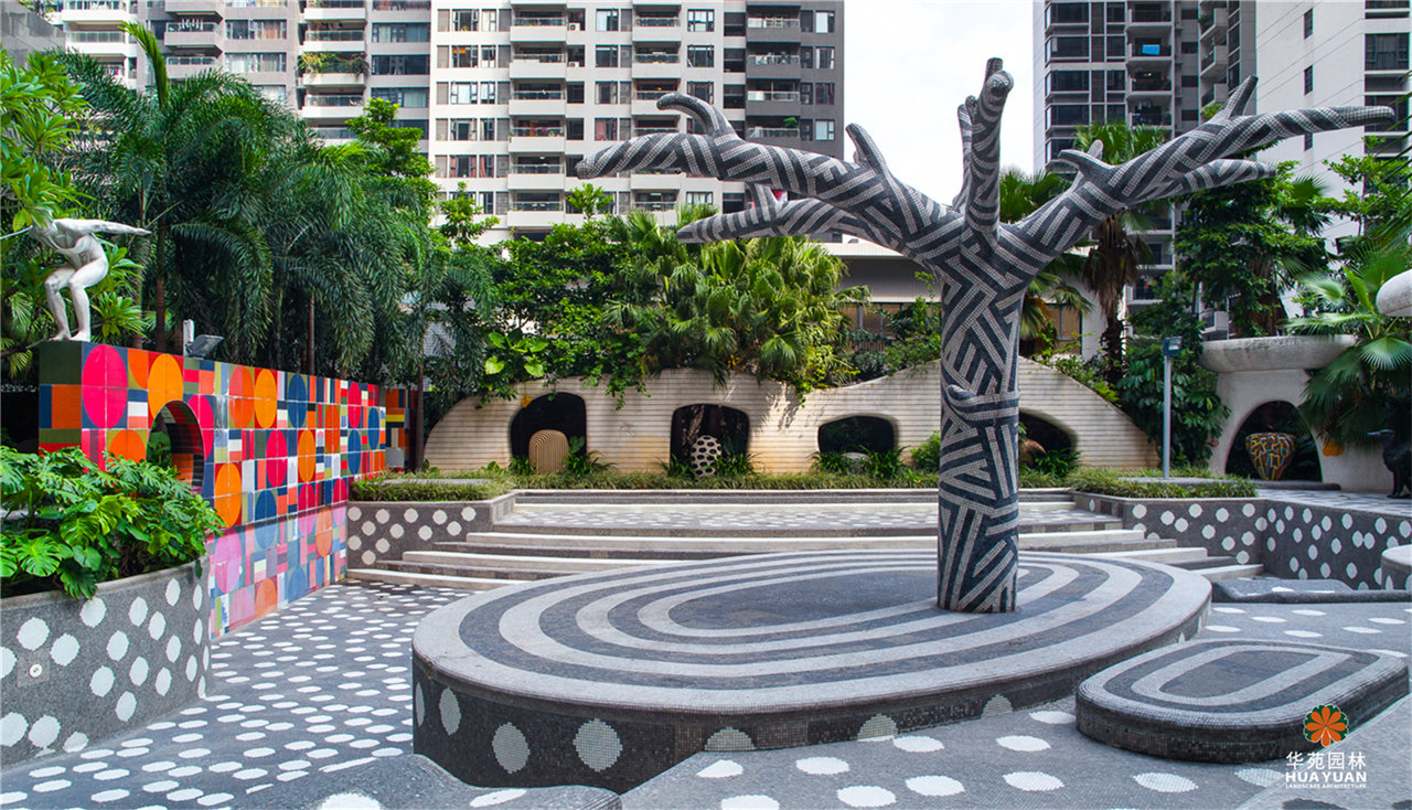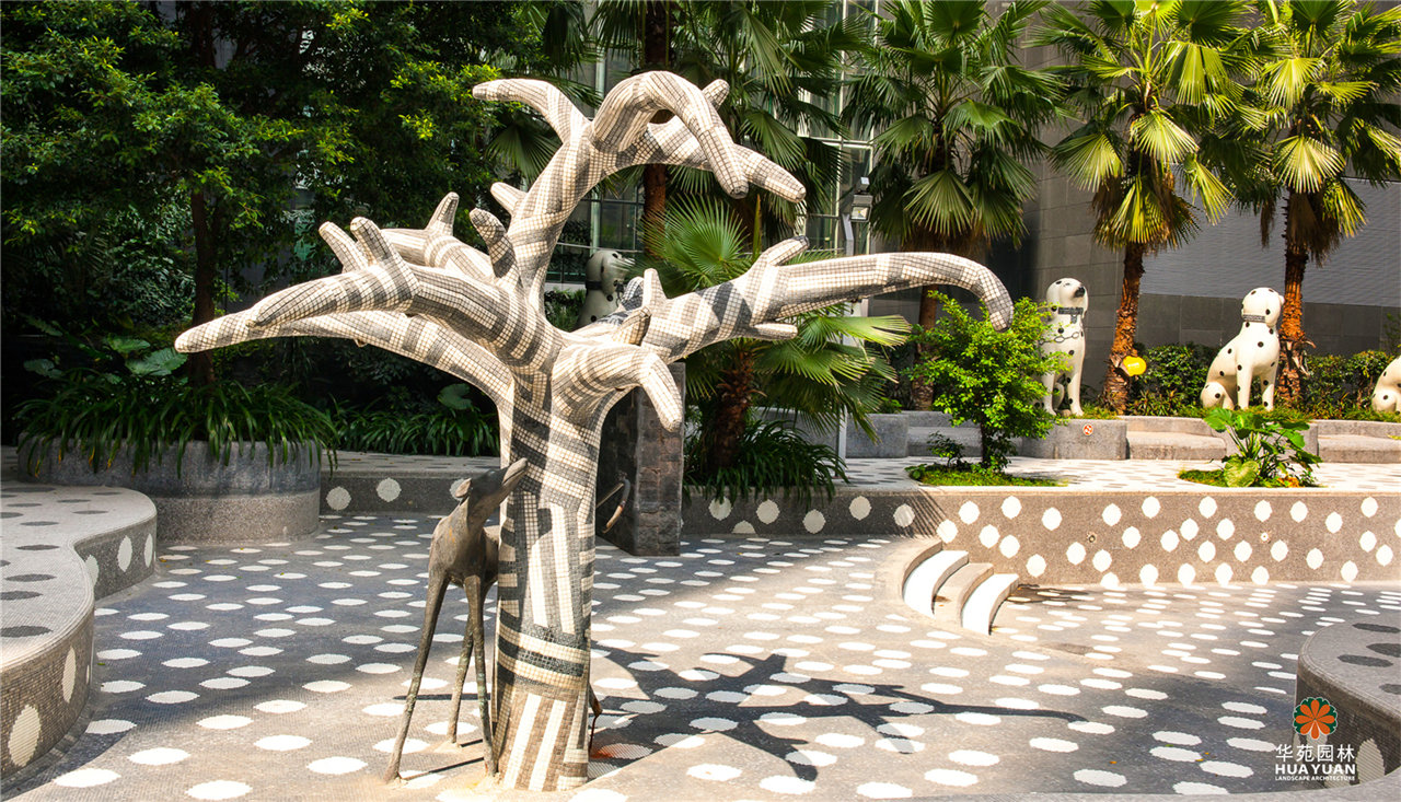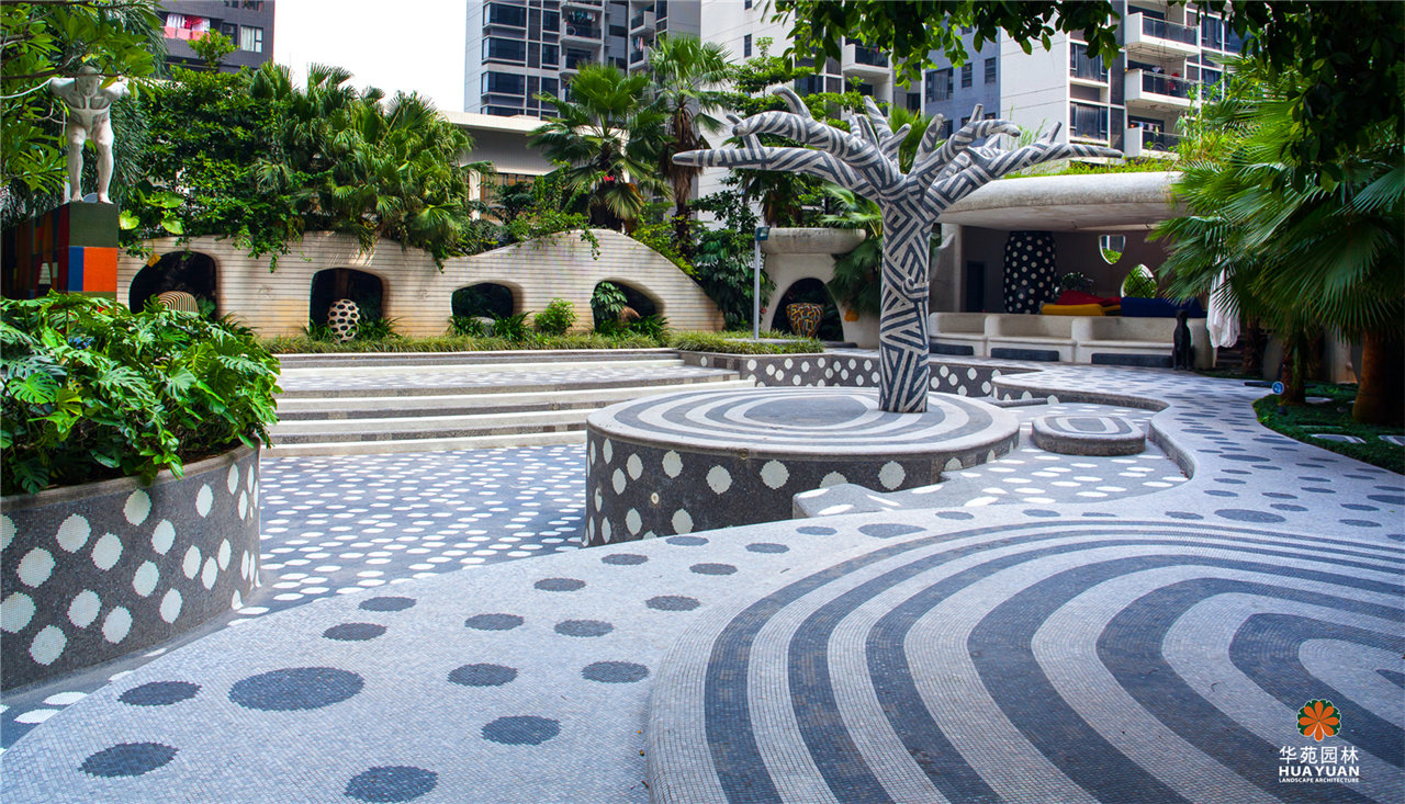 迷幻的馬賽克鋪貼,魔幻的雕塑小品,仿佛進入了愛麗絲夢游仙境的場景,充滿幻想與趣味。