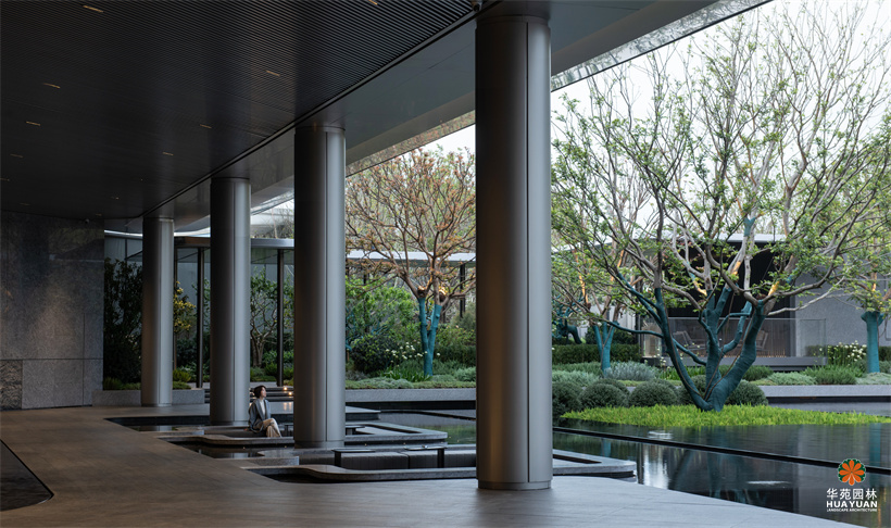 項(xiàng)目位于廣州天河智谷,以現(xiàn)代主義設(shè)計(jì)語言刻畫出場(chǎng)地的靈動(dòng)與松弛感,華苑園林匠造大規(guī)模架空層,精工細(xì)作多處藝術(shù)鏡面水景、弧形景墻,以自然手法堆坡造林,刻畫森系場(chǎng)景,營(yíng)造具有藝術(shù)和精致煙火氣的品質(zhì)住宅。