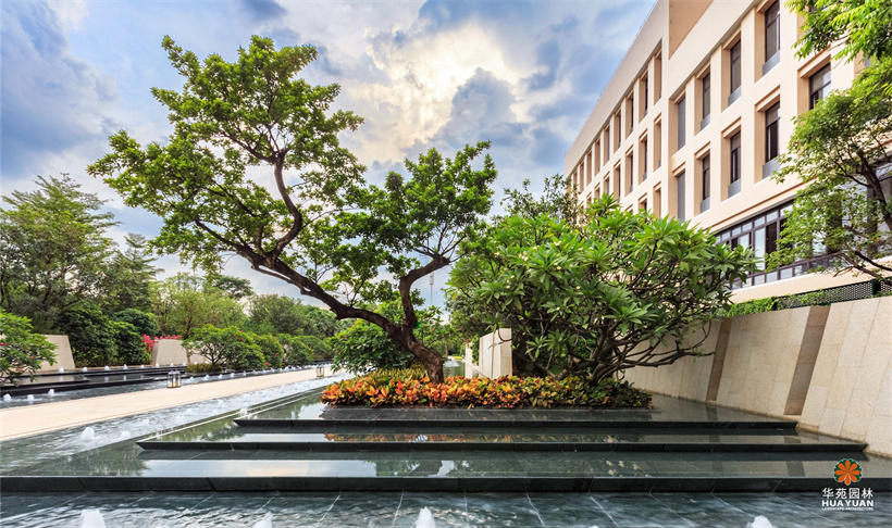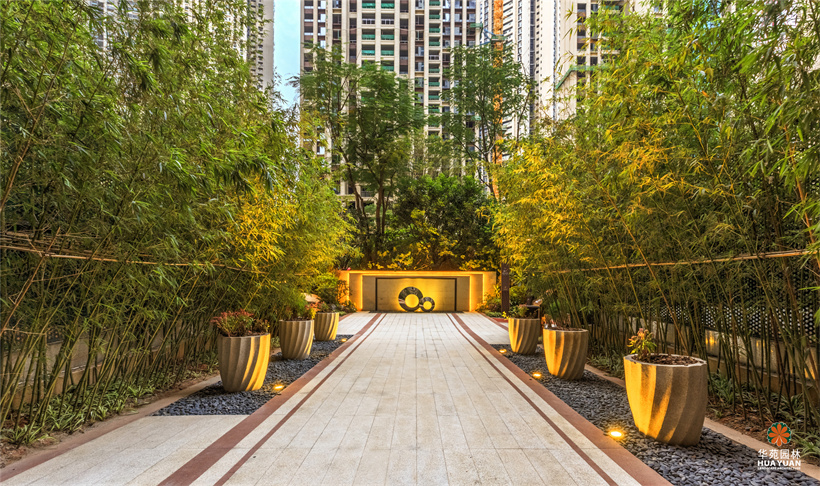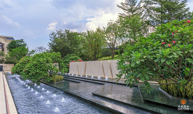 華發(fā)集團在廣鋼新城的高端豪宅標(biāo)桿項目。層次豐富的入口景觀、大氣的不規(guī)則疊級鏡面水景,加上景墻與綠植,營造出多變的景觀意趣;細(xì)流從主題景墻中噴射而下,嘉寶果樹點綴于靜水中,浪漫而清新;高貴典雅的歐式景墻、規(guī)整大氣的地臺式水景,加上豐富多彩的植物,共同構(gòu)建出典雅精致的園林景觀。