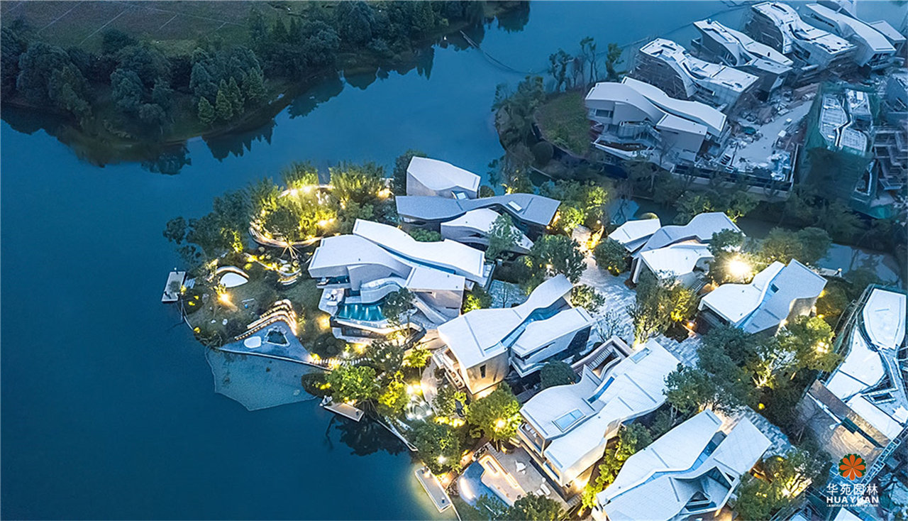中國“神盤”之一,國家級“天府新區(qū)”高端生態(tài)示范區(qū)的標桿項目。七棟樣板獨棟別墅依湖而建,建筑現(xiàn)代前衛(wèi)、空間變化有趣,與之相匹配的景觀空間以地形高差為基礎,結合湖景與建筑特色,借景對岸麓湖云朵樂園,采用品種多樣的進口材料,融合精湛工藝,對別墅的園林景觀進行精密施工,再現(xiàn)格調高雅、現(xiàn)代浪漫的定制式生態(tài)豪墅景觀空間。
