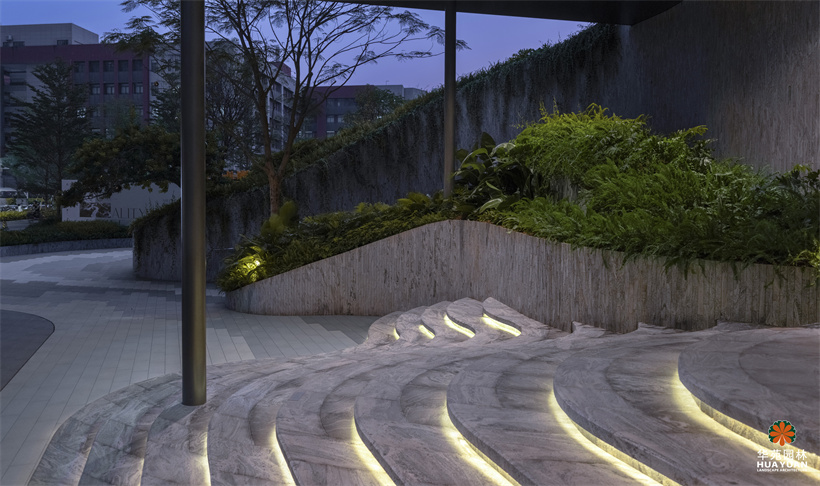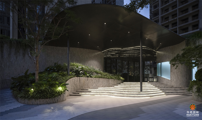 項目特邀世界十佳景觀設(shè)計公司泰國TROP景觀事務(wù)所,以6米挑高弧形門樓,豎向小料石粘貼的曲面花池,及長效低維護的自然花境、自然垂掛的光耀藤,打造兼?zhèn)渚坝^視野和社交場域感的立體公園社區(qū)。