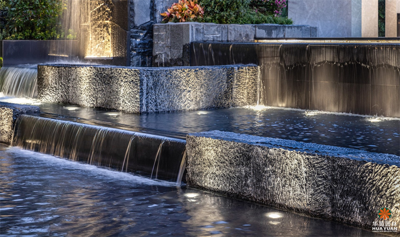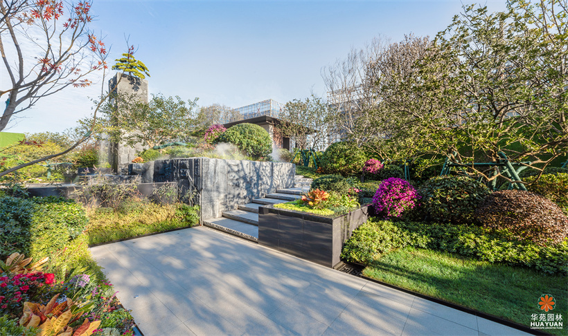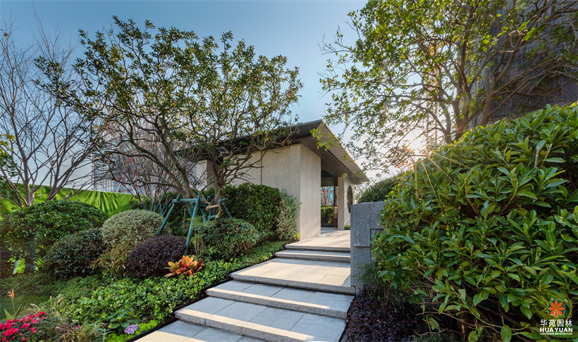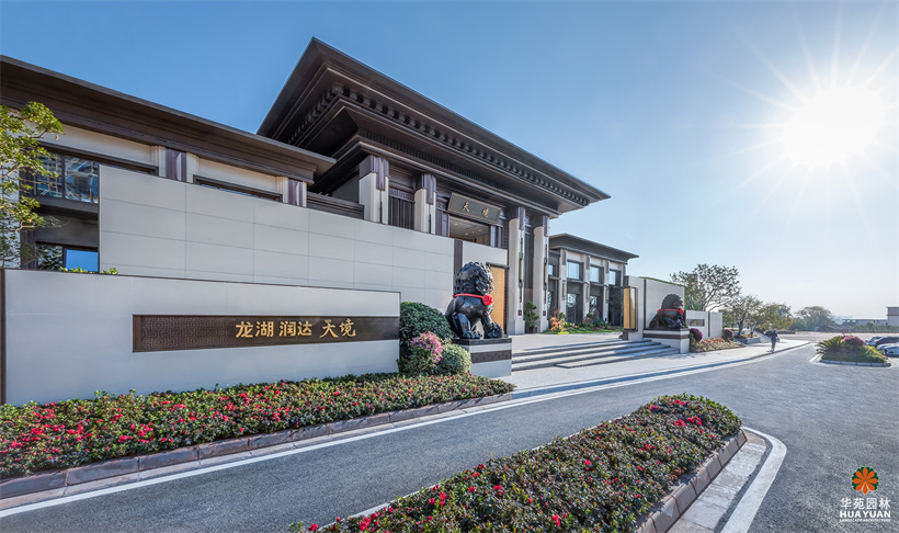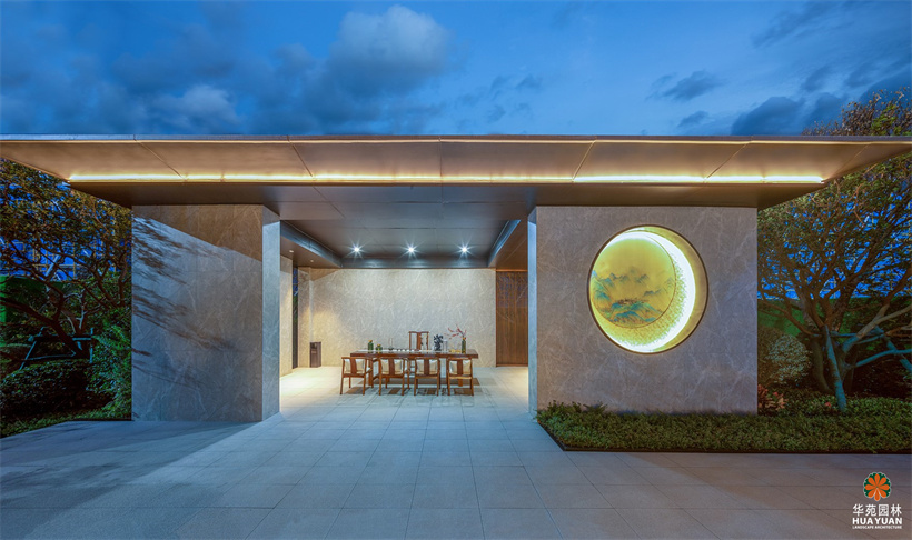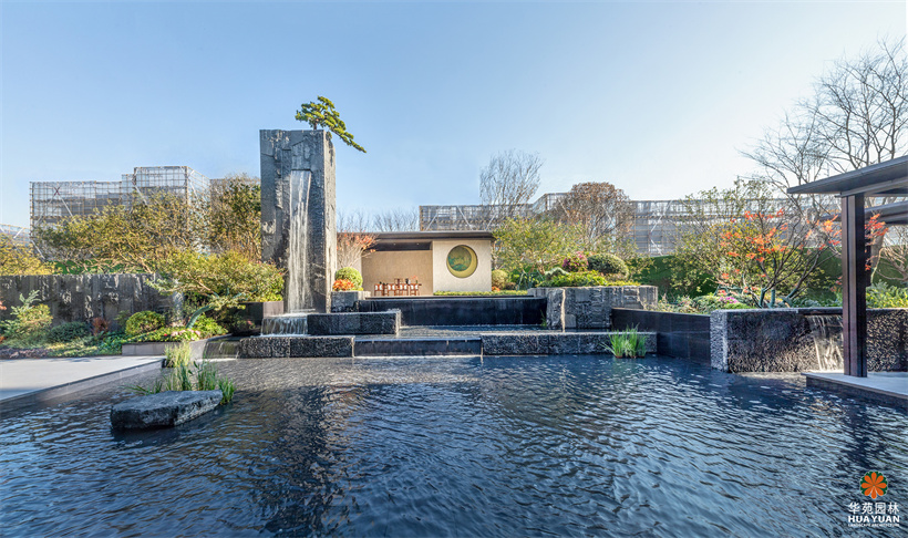 項目展示區(qū)采用新中式園林風(fēng)格,融合傳統(tǒng)院落禮儀格局,以中心水景為核心展開,營造典雅而富有現(xiàn)代東方意趣的景觀空間。