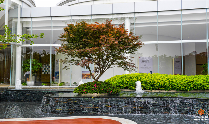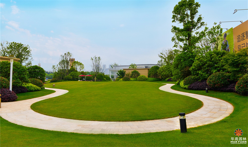 南昌高新區(qū)CBD中心的地鐵上蓋物業(yè),是集超甲寫字樓、五星級酒店、高端住宅、商業(yè)街為一體的城市綜合體,其售樓部園林景觀延續(xù)豐富的水資源景觀,將蓮葉的形態(tài)與建筑融合,利用曲線構(gòu)圖成景,建筑波浪形的流線與緊鄰的弧形水景互為映襯,打造出自然、生態(tài)、親水的園林景觀。