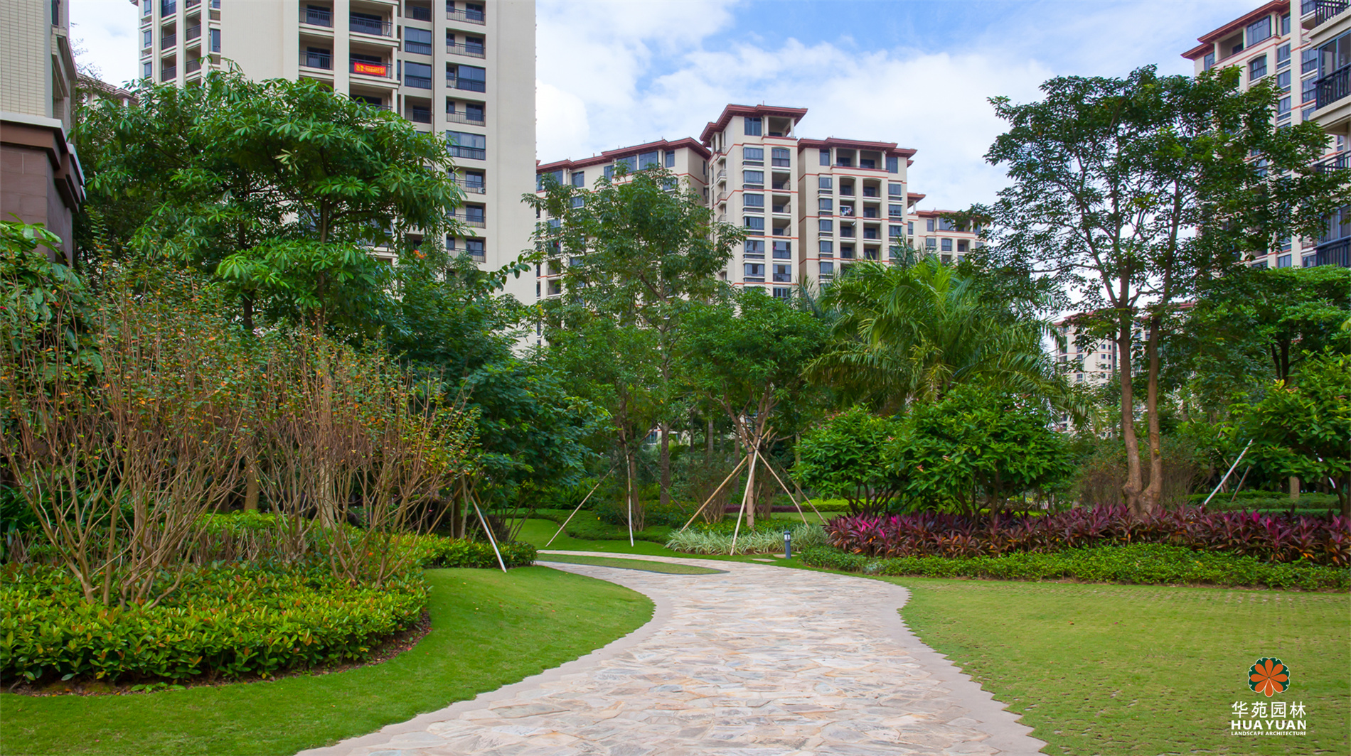 塑石假山群置于自然式水景之上,休憩涼亭的特色瓦頂、乳白色寶瓶柱身與磚紅的庭院燈、青翠的綠植,組合出一幅自然式風(fēng)情畫;池底,兩種不同明度的藍(lán)色馬賽克瓷磚鋪貼而成的圖案,充滿宗教神秘色彩的雕塑小品,造工細(xì)膩的砂巖浮雕,加上蓊郁蒼翠、層次豐富的綠植空間,渲染出濃郁的東南亞園林風(fēng)情。