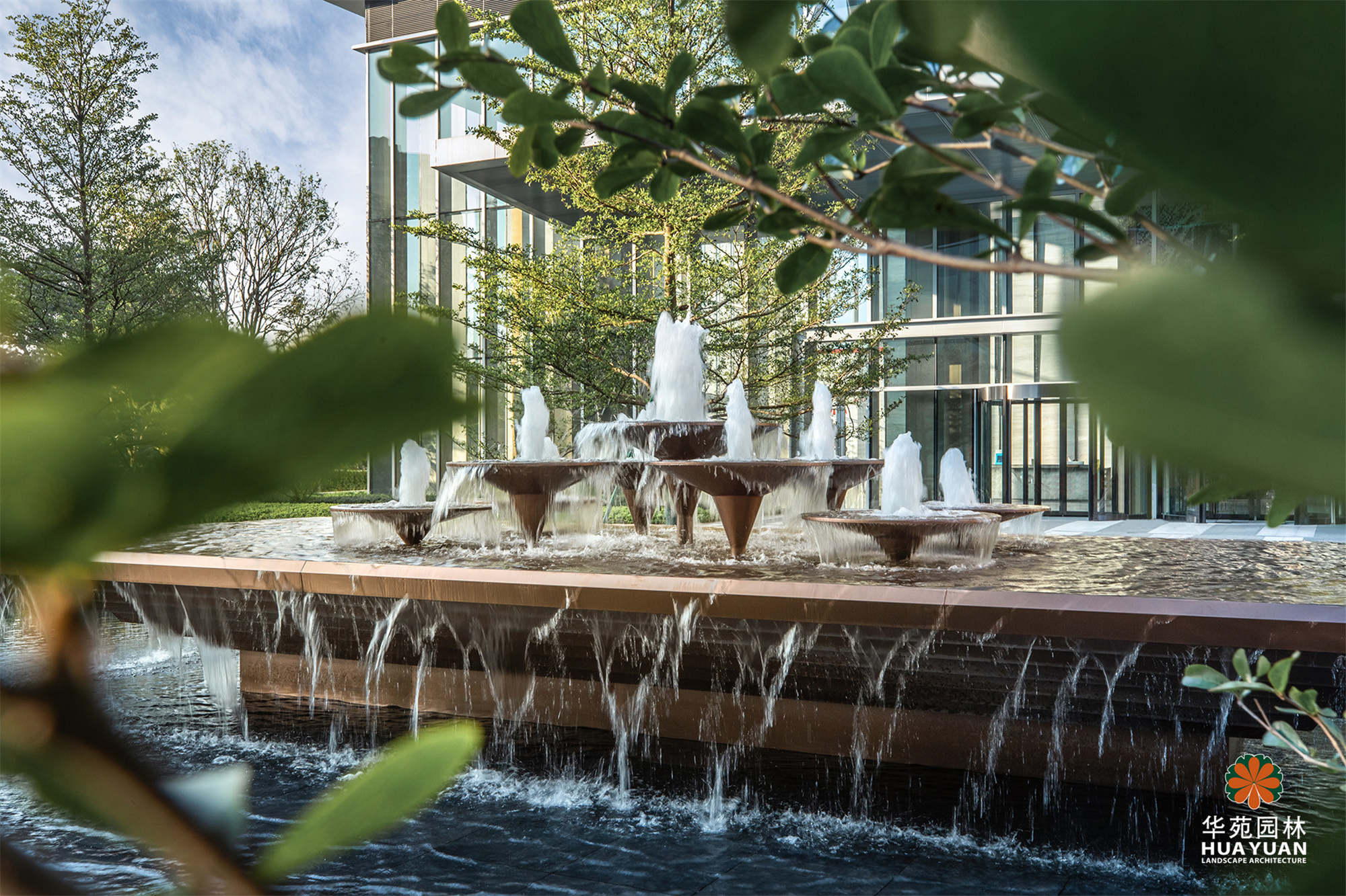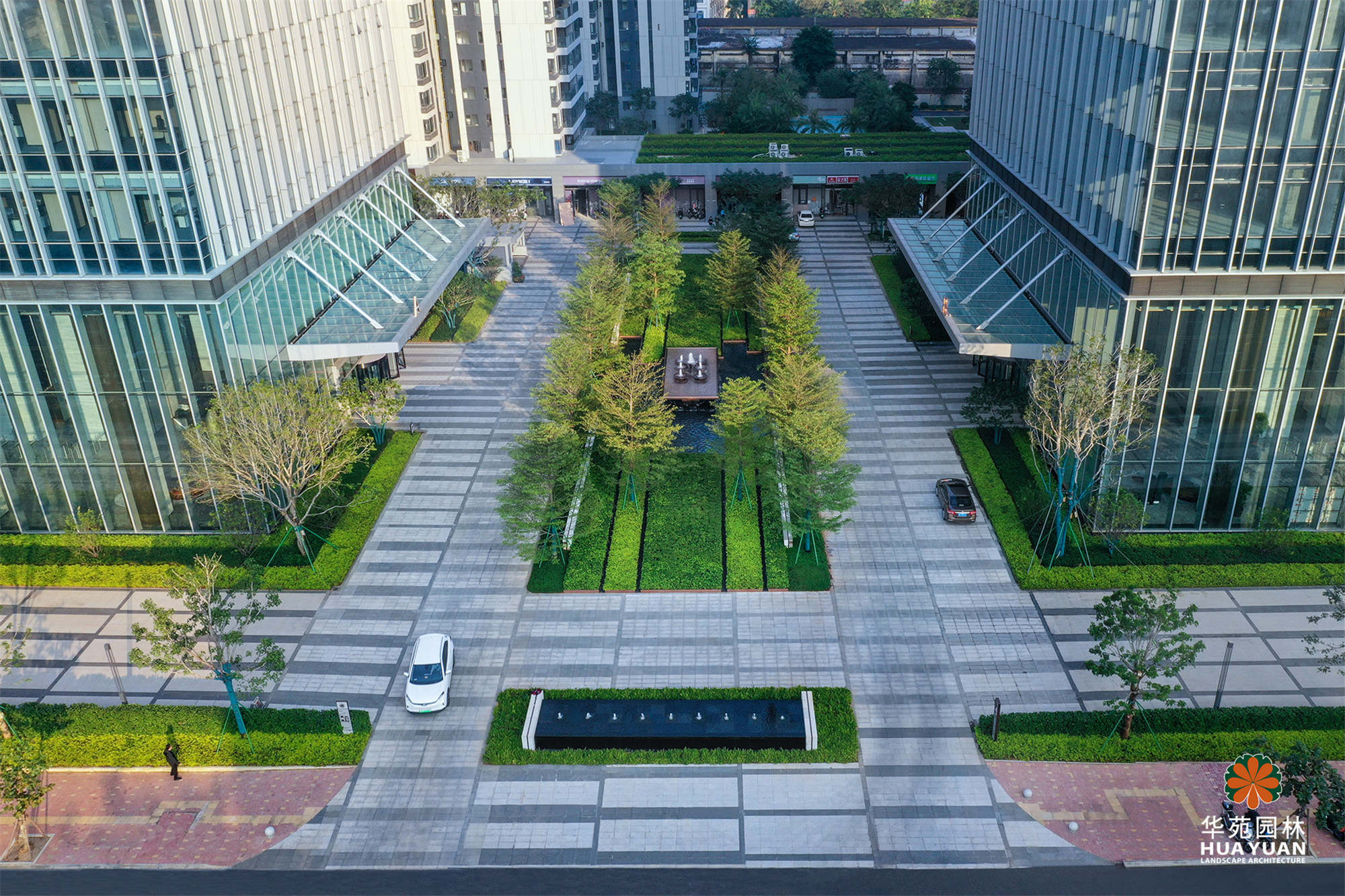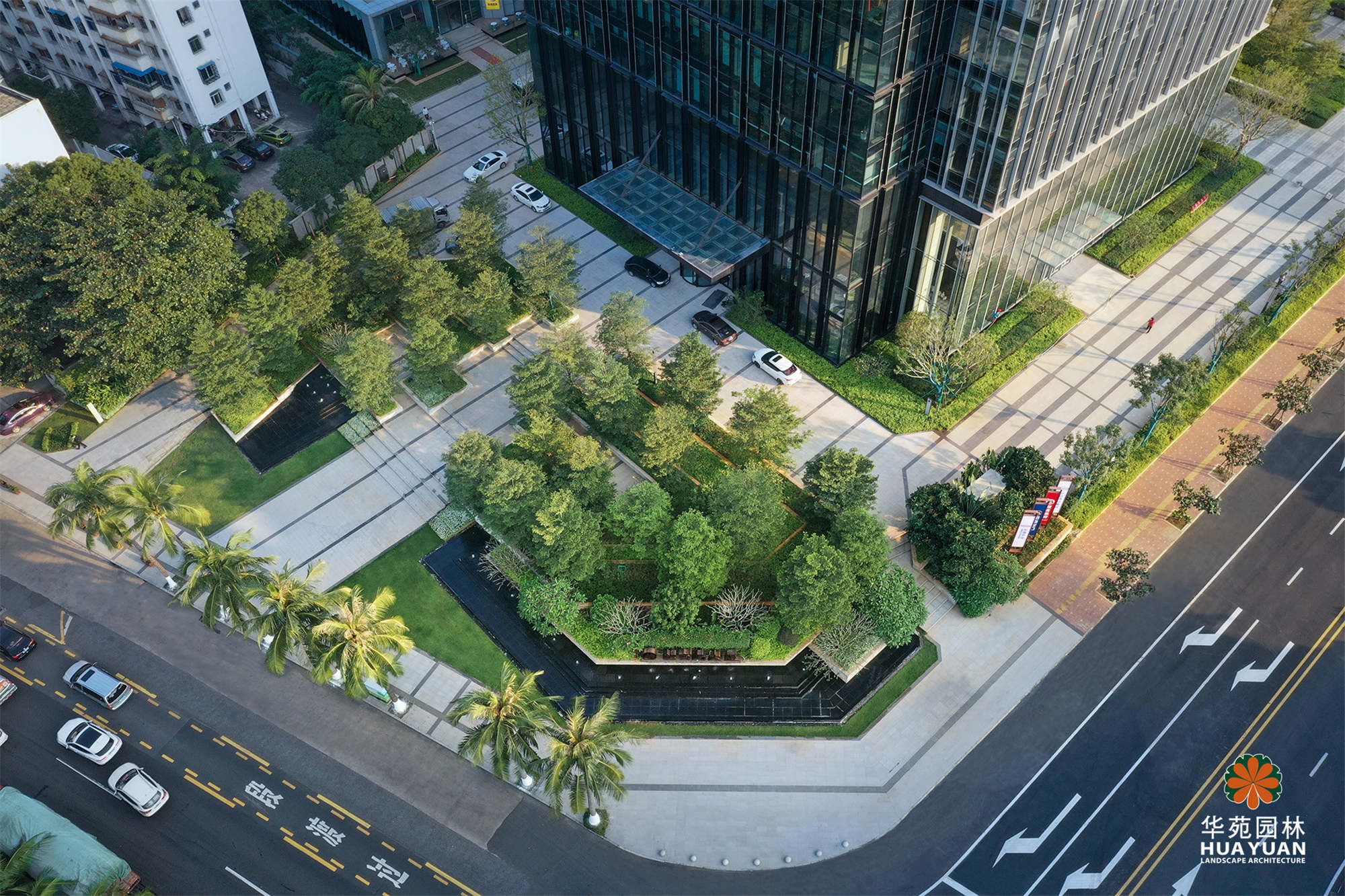 項目以“森林綠洲”為景觀主題,結(jié)合??诘某鞘酗L(fēng)貌,用層次簡潔、疏密有致的綠化,將簡約大氣的線性地鋪與特色水景有機地融為一體,形成既有格調(diào)又不失休閑氛圍的現(xiàn)代高端寫字樓景觀。