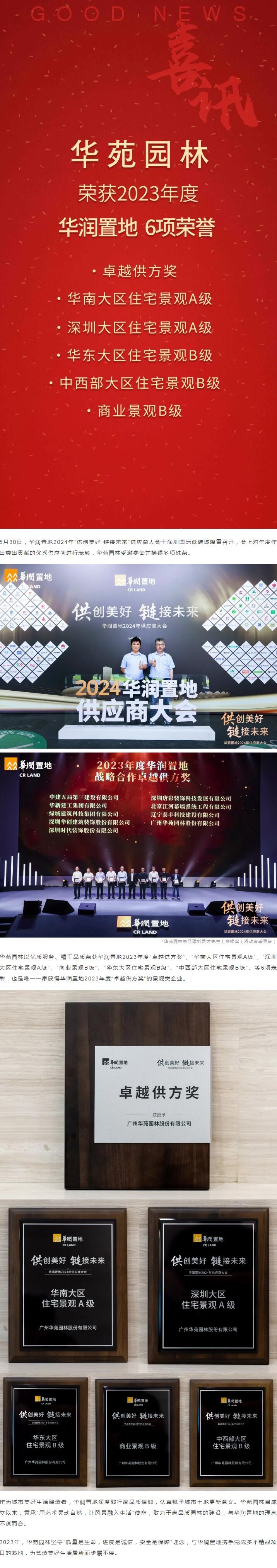 華苑園林榮獲華潤置地卓越供方獎(jiǎng)等6項(xiàng)表彰丨合作精品項(xiàng)目盤點(diǎn)