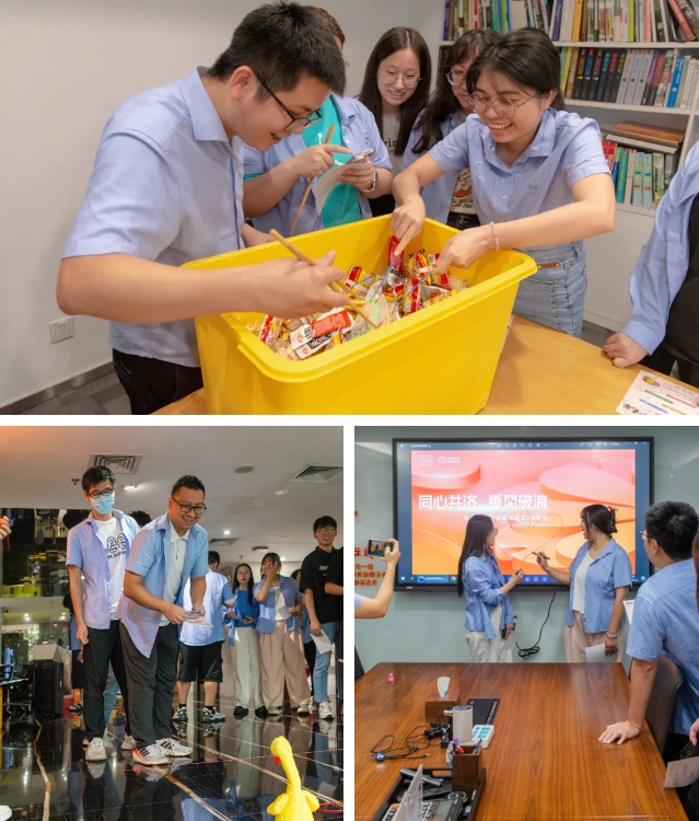 活動伊始,我們通過一系列有趣的互動環(huán)節(jié)拉開了司慶的序幕,包括“圈大鵝挑戰(zhàn)”、“蒙眼撈零食”、“單手反水杯”、“筷子夾乒乓”、“同心與同德”等精彩游戲。
