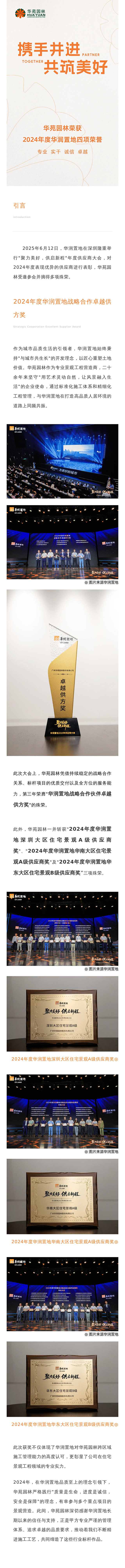 華苑園林連續(xù)三年榮膺華潤(rùn)置地戰(zhàn)略合作卓越供方獎(jiǎng)等四項(xiàng)大獎(jiǎng)